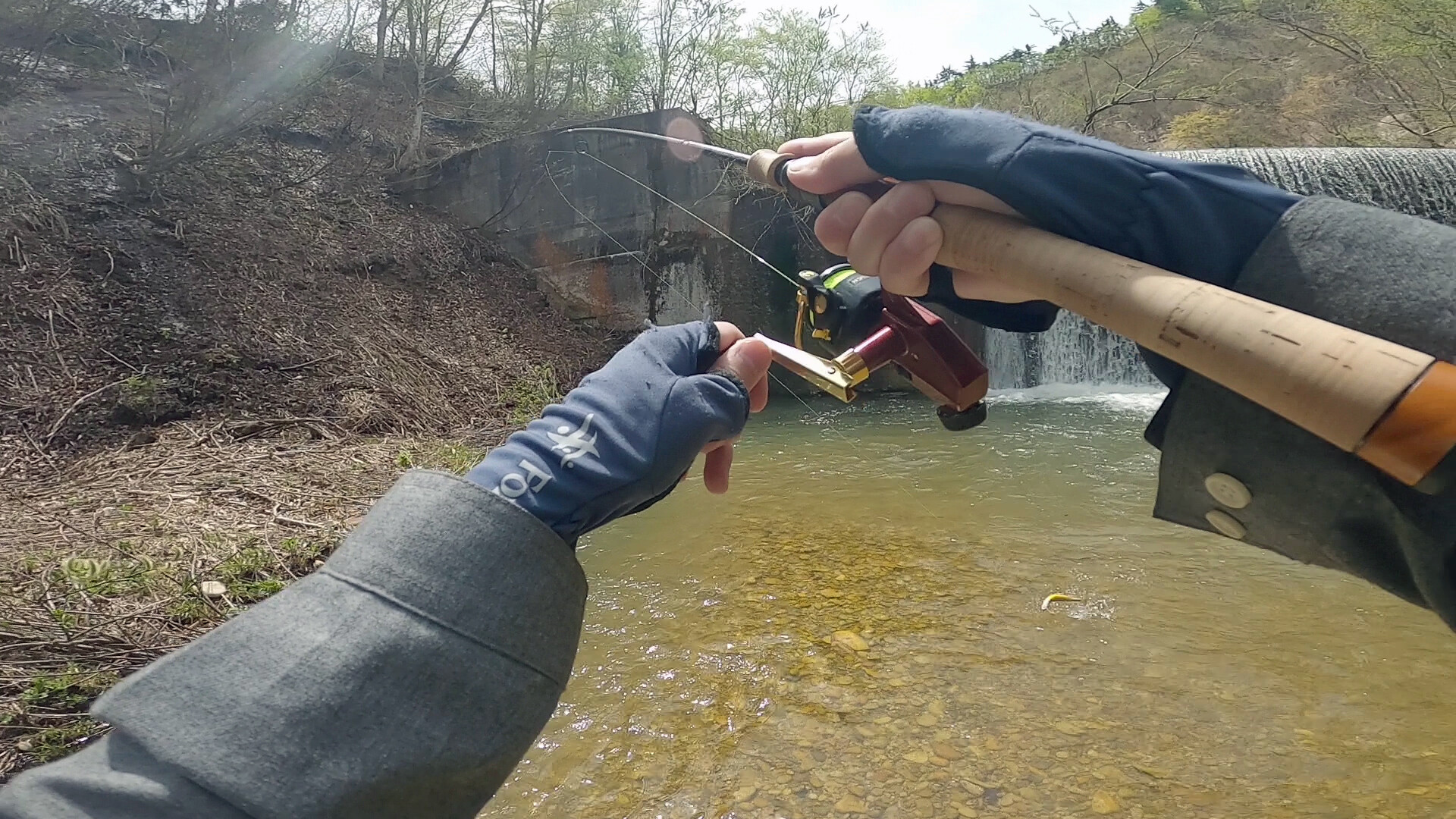入渓から少しすると、小さいながらも魚の反応が見られました。