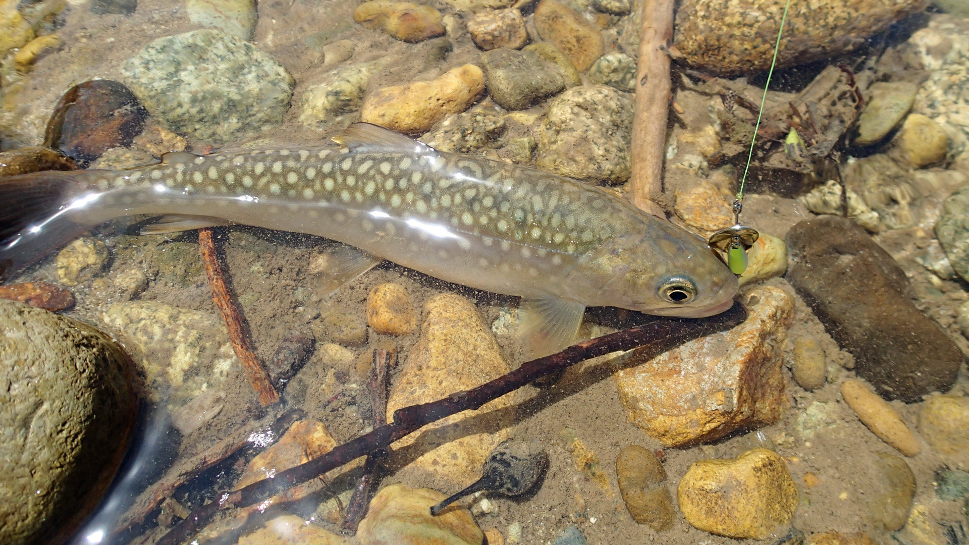 ダウンストリームでも釣れますが、流れによっては、スピナーが飛び出してしまうので、スピード調整は必要になります。僕の場合は、強めの流れに入ったらリーリングをやめ、その流れから出たらリーリングを再開するようにしています。